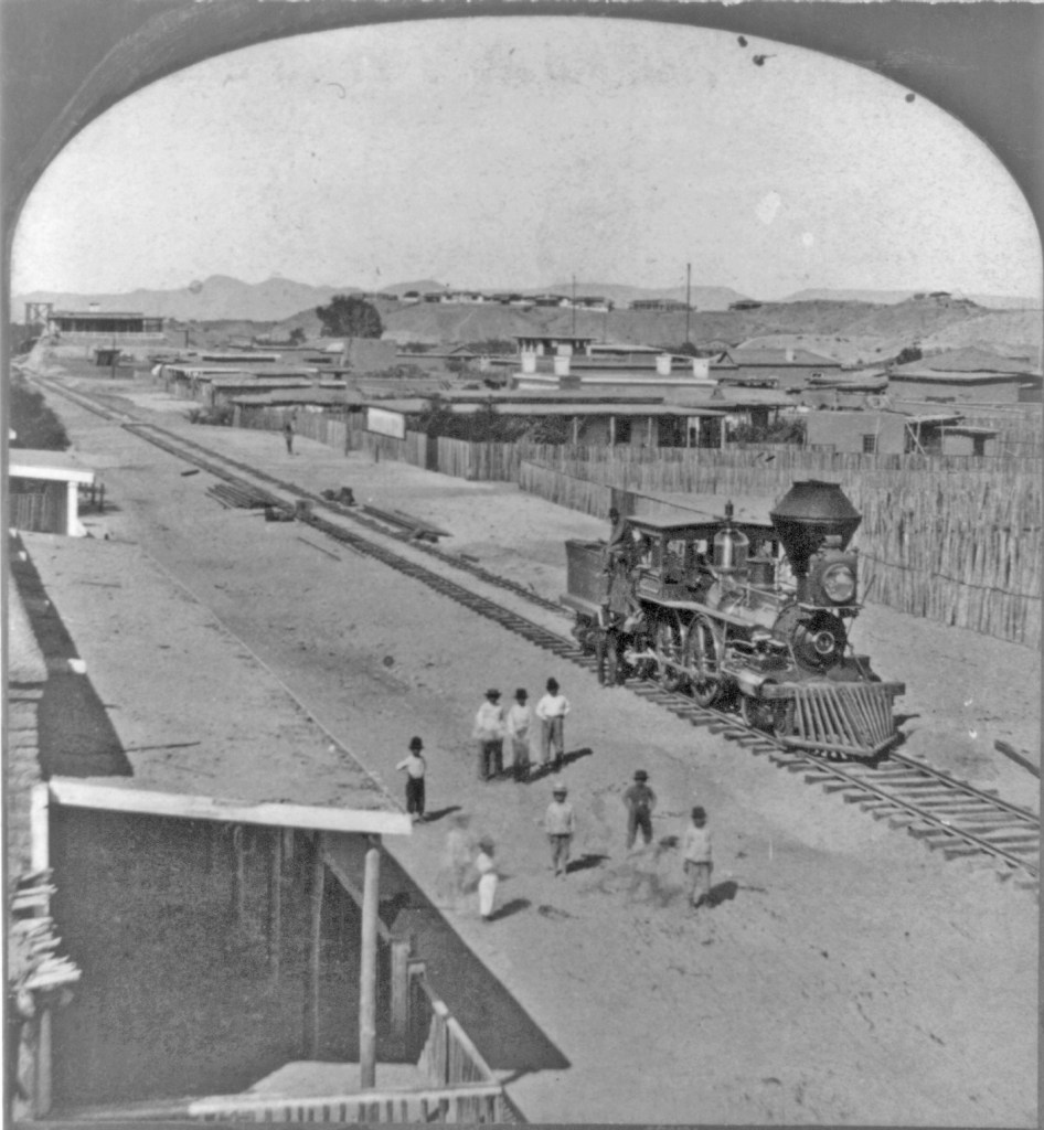 The Southern Pacific completed tracks from Los Angeles to Indio, California in 1876, and on to Yuma, Arizona in 1877. That year, photographer Enoch Conklin traveled in Arizona, taking his own pictures as well as acquiring photos from others. “Picturesque Arizona: Being the Result of Travels and Observations in Arizona During the Fall and Winter of 1877” was published by the Mining Record Printing Establishment, in which his pictures were credited to the Continent Stereoscopic Company. An incomplete set of the images were deposited in the LoC by an unknown source in 1907.