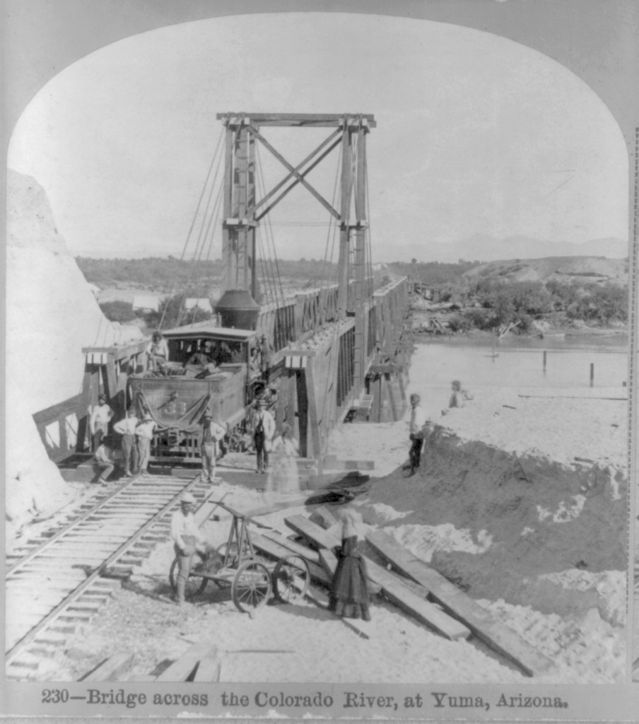 The bridge was built to swing a section aside so large boats could ply the River. Starting in 1852, steamboats were used to transport goods and people on the lower Colorado.