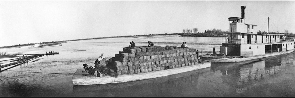 Searchlight delivering a barge load of provisions to the work camp for closing the break in the Colorado bank that created the Salton Sea (circa 1905-1907). US Bureau of Reclamation photograph