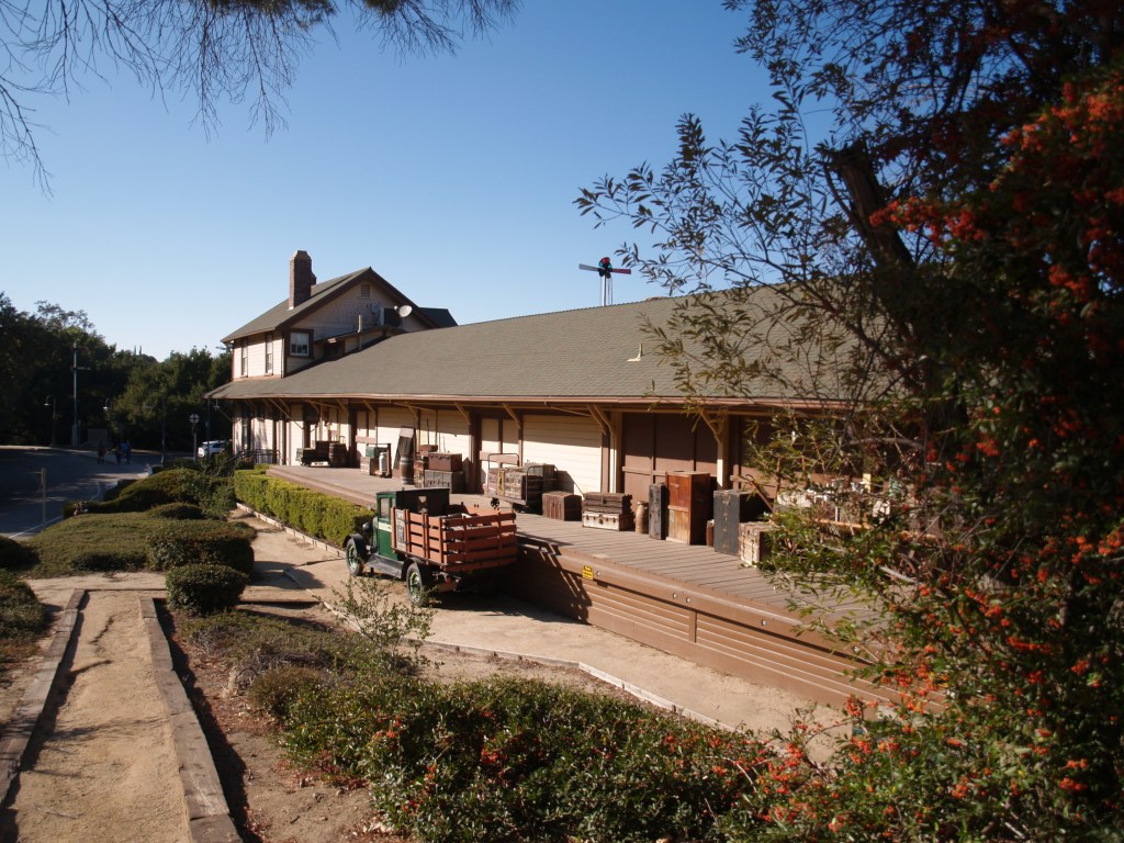 The Santa Susana Depot in HO scale: the model railroad in the depot recreates the Southern Pacific through the region in the 1950s. Businesses near the Depot in the 1950s.