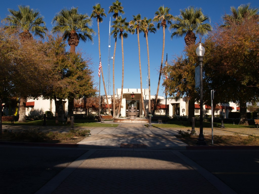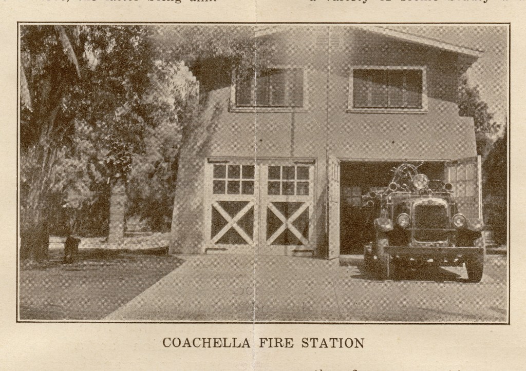 The Fire Station was built on land donated by the Coachella Land & Water Co. to Riverside County, circa 1905, when the town was being platted. When the City was incorporated in 1946, one of its first actions was to ask the County to donate the land to the new City. Next door to the site of the Fire Station, the new City Hall was built; to the north of City Hall and the Fire Station, approximately half of the parcel continued to be used as a park and is today Veterans’ Memorial Park.