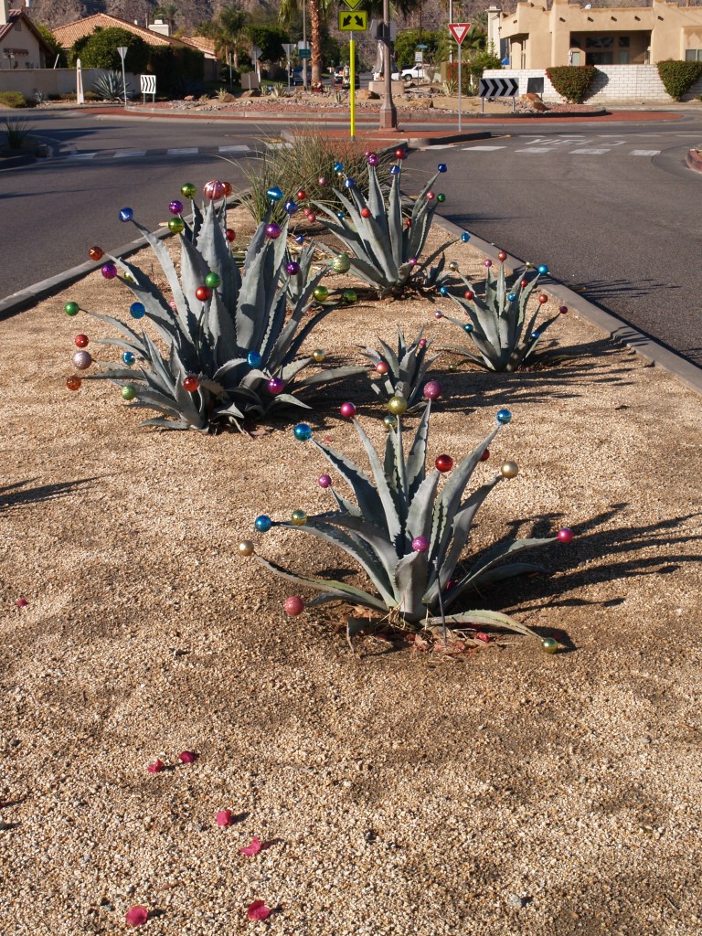 Someone decided to add some holiday cheer to the agaves in the median on Calle Sinaloa!