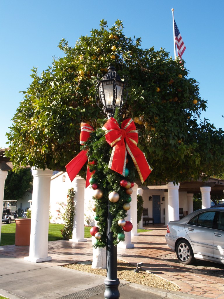 The Resort is very proud that Frank Capra stayed there & every year turns it into “BedfordFalls” for the holidays. However, the citrus tree in the background makes it clear this is the California desert.