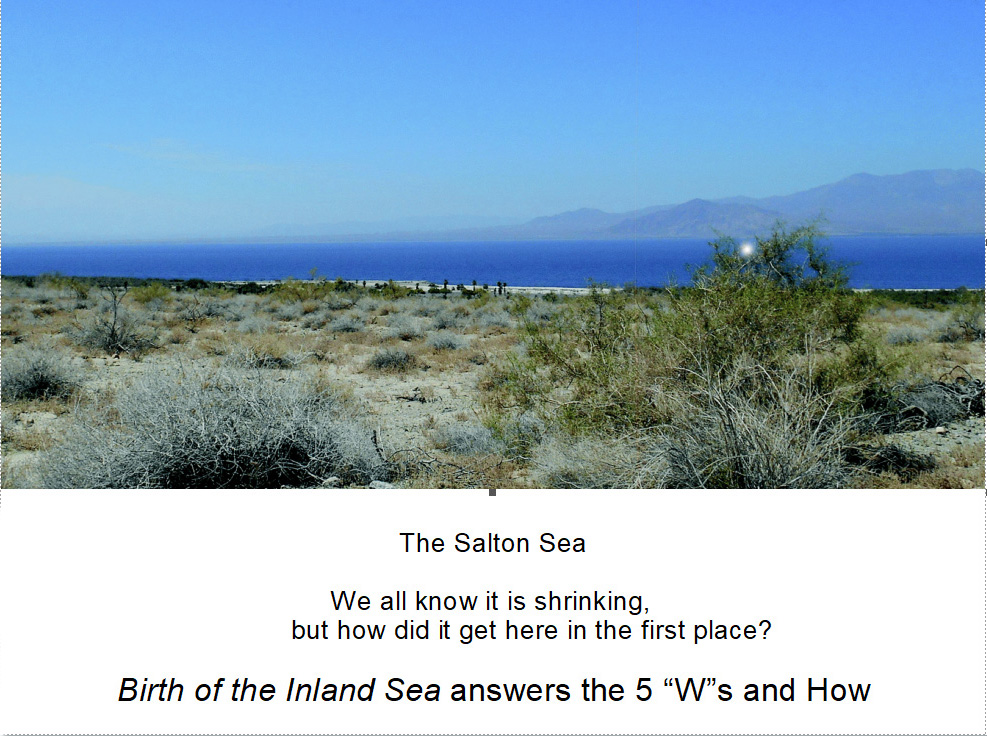 Based on accounts by C.R. Robinson, who unintentionally allowed the River to escape, and H.T. Cory, who, with the resources of the Southern Pacific Railroad, closed the breach, as well as newspaper articles, professional reports, and other early Twentieth Century account, Birth of the Inland Sea explains how the Salton Sea came to be. With 105 early photographs and maps, plus 26 modern photographs and a map of the Sea, the book graphically sets the background for today’s news that the Sea is rapidly shrinking.